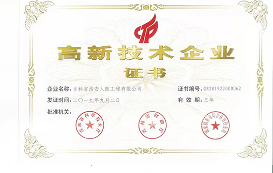 吉林省浩安人防工程有限公司是經國家人民防空辦公室批準成立的人防工程防護設備定點生產廠,2019年認定為國家級高新技術企業。本廠擁有現代化的廠房及先進的生產設備,集生產制造、質量控制、銷售服務為一體的區域性行業廠。公司座落在吉林省公主嶺經濟開發區,占地面積達10000平方米,辦公樓1200平方米,廠房建筑面積達6000平方米以上,注冊資金1000萬元,企業的技術力量雄厚,其中防護工程師,高級工程師及中高級專業技術人員占30%。青海分公司2018年10月15日成立,于當年11月26日通過 青海人民防空辦公室備案公示。 本廠經營的主要產品:連續玄武巖纖維新型人防防護門、鋼結構人防防護門、鋼筋混凝土人防防護門以及各種型號的通風設備和防化設備。本廠生產設備齊全,擁有雄厚的生產能力和技術水平,并嚴格按照國家相關標準生產和安裝。2015年5月15日正式開業至今,承接吉林省人防工程項目上百項,總施工面積超過百萬平方米。工程項目包含人防指揮所、醫院、地下商場、商場、學